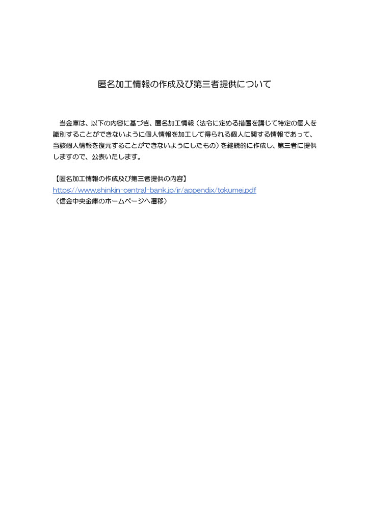 匿名加工情報の作成及び第三者提供について