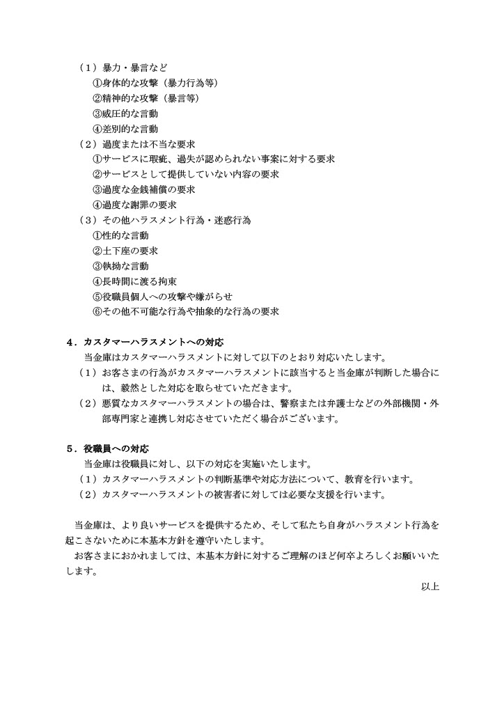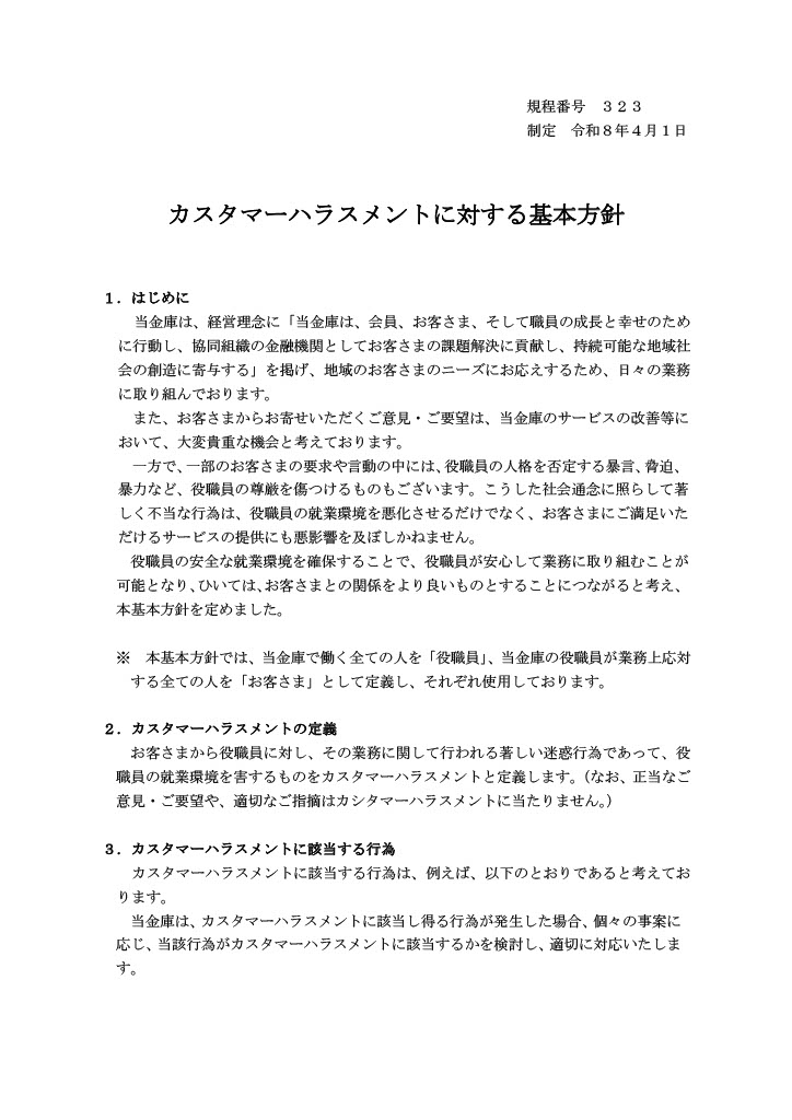 カスタマーハラスメントに対する基本方針